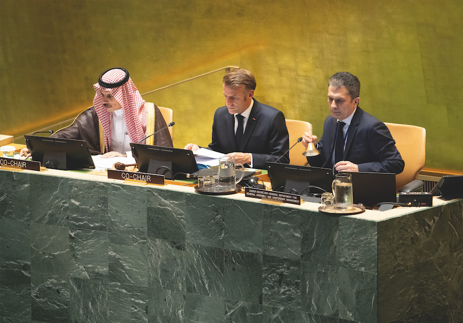 Foto: Zitting van de Algemene Vergadering van de Verenigde Naties ter ondersteuning van een tweestatenoplossing. September 2025 – New York