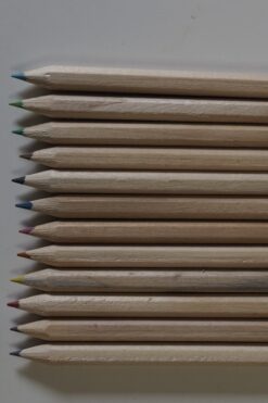 Kleurpotloden/puntenslijper Jezus houdt van ons. 12 kleurpotloden in een pink kokertje met puntenslijper.